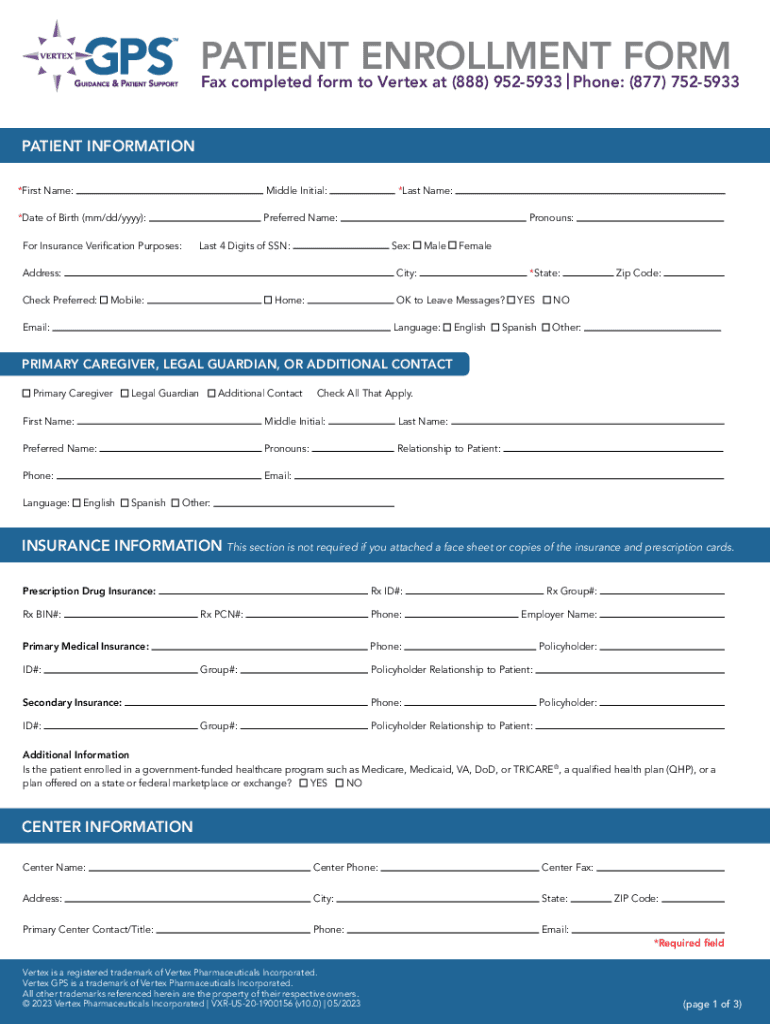 Healthcare providers and facilities are required to file the patient enrollment formvertex gps for each patient being enrolled.