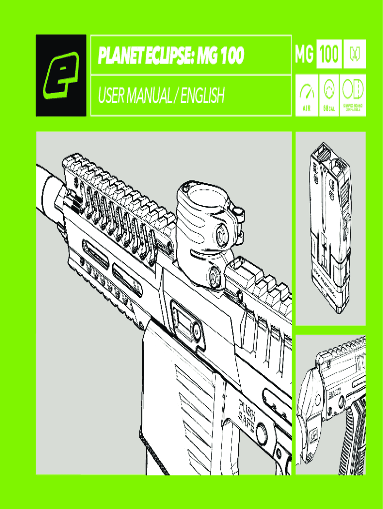 COMPATIBLE02 WARNINGSREAD CAREFULLY BEFORE USE!THE PLANET ECLIPSE MG 100 IS NOT A TOY. PAINTBALL