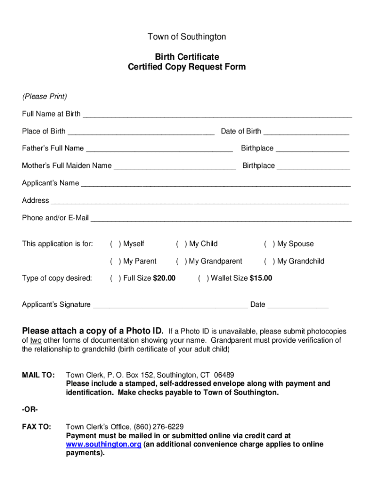 Get the free Town of Southington Birth Certificate Certified Copy ...