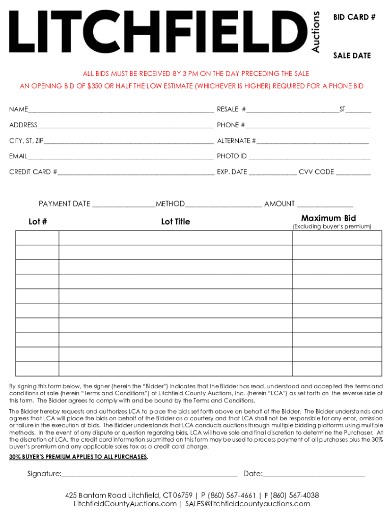 AN OPENING BID OF $350 OR HALF THE LOW ESTIMATE (WHICHEVER IS HIGHER) REQUIRED FOR A PHONE BID