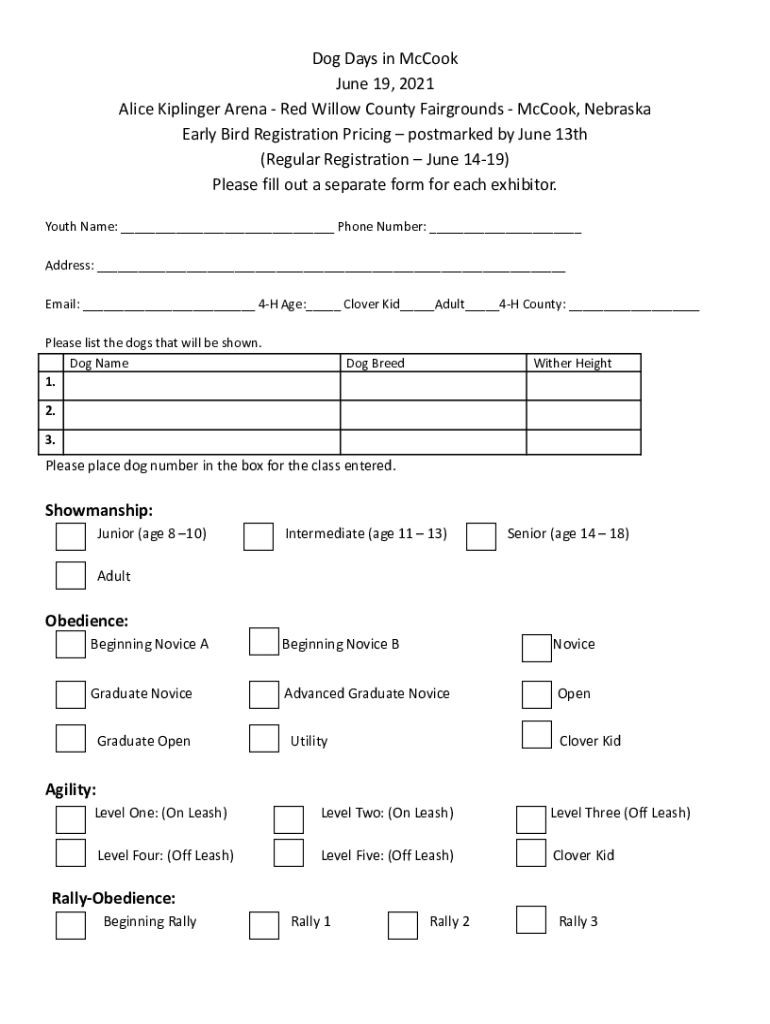 Early Bird Registration Pricing postmarked by June 13th