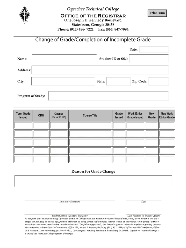 Phone: (912) 486 7221 Fax: (866) 8477994Change of Grade/Completion of Incomplete