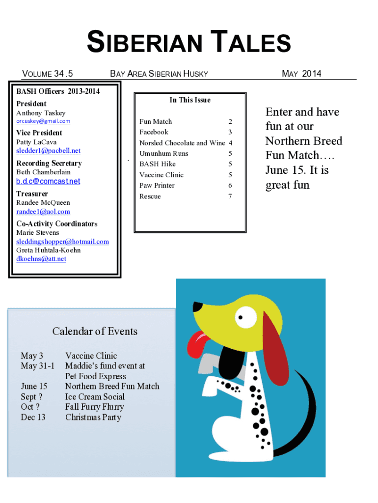 VOLUME 34 .5BAY AREA SIBERIAN HUSKY 2014BASH Officers 20132014