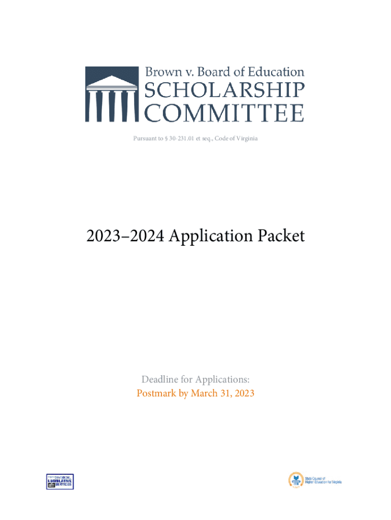 Pursuant to 30231.01 et seq., Code of Virginia20232024 Application PacketDeadline for Applications: Postmark by March 31, 2023BROWN v. BOARD OF EDUCATION FACT SHEET The Historical Setting State laws