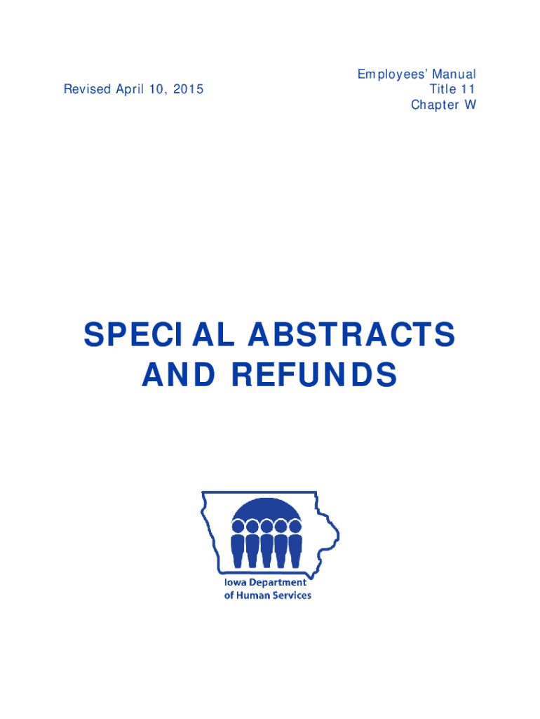 Revised April 10, 2015Employees Manual Title 11 Chapter SPECIAL ABSTRACTS AND REFUNDSTitle 11: Enforcement and Distribution Chapter W: Special Abstracts and Refunds Revised April 10, 2015TABLE OF