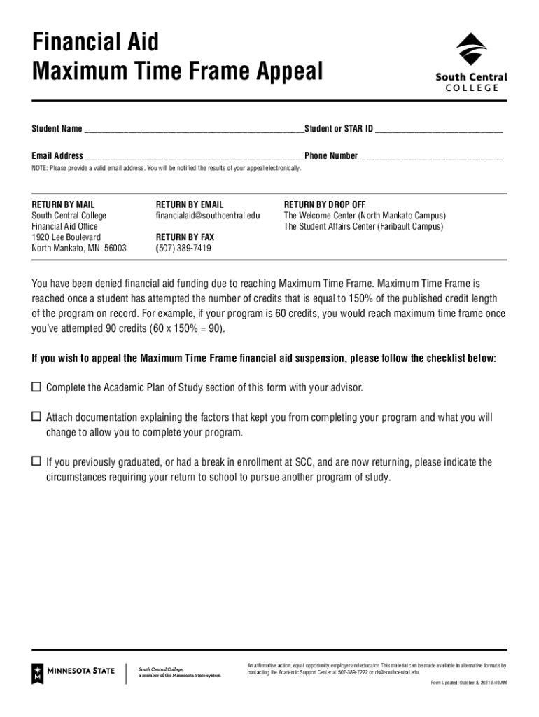 Get the free Financial Aid Maximum Time Frame Appeal Form