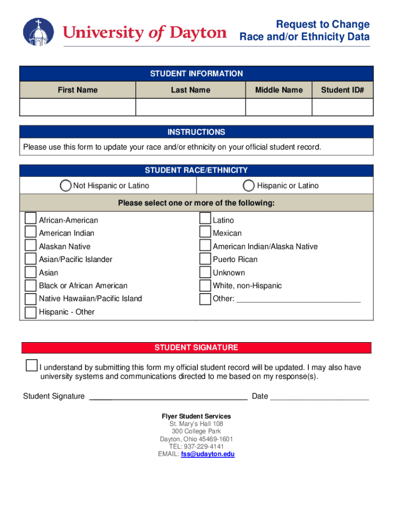Please use this form to update your race and/or ethnicity on your official student