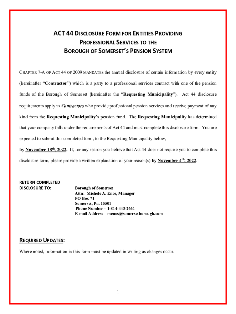 Get the free ACT 44 Disclosure Form for Entities Providing