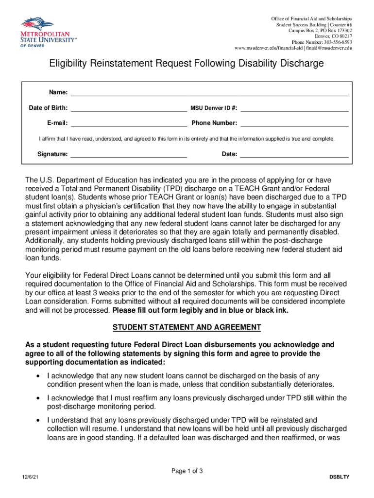 Get the free Eligibility Reinstatement Request Following Disability ...