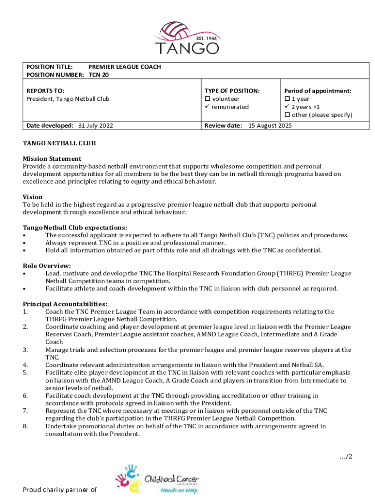 Get the free TANGO NETBALL CLUB COACH DEVELOPMENT POLICY