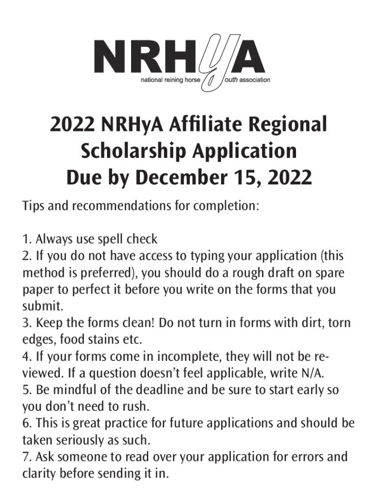2022 NRA Affiliate Regional Scholarship Application Due by December 15, 2022, Tips and recommendations for completion: 1. Always use spell check 2. If you do not have access to typing your application