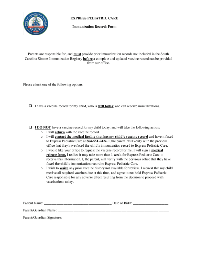 Get the free EXPRESS PEDIATRIC CARE Immunization Records Form ...