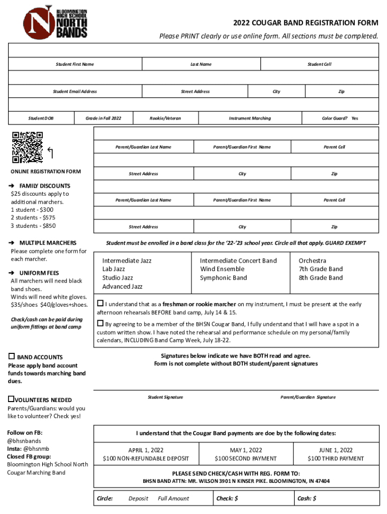 2022 COUGAR BAND REGISTRATION FORM