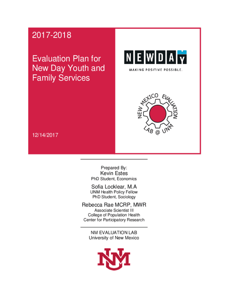 20172018 Evaluation Plans for New Day Youth and Family Services12/14/2017Prepared By:Kevin Estes PhD Student, Economics Sofia Locker, M. A UNM Health Policy Fellow PhD Student, SociologyRebecca Rae