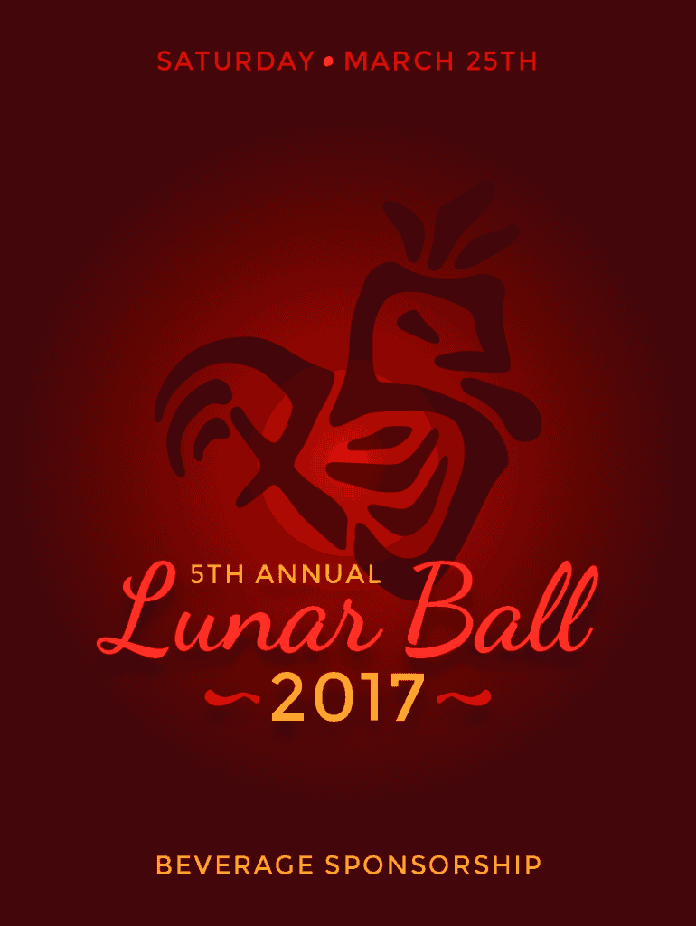 SATURDAYMARCH 25THLunar Ba 5TH ANNUAL2017BEVERAGE SPONSORSHIP ARE INVITED The 5th Annual Lunar Ball, Chicago's the largest fundraiser for Asian American young professionals and friends, will be held