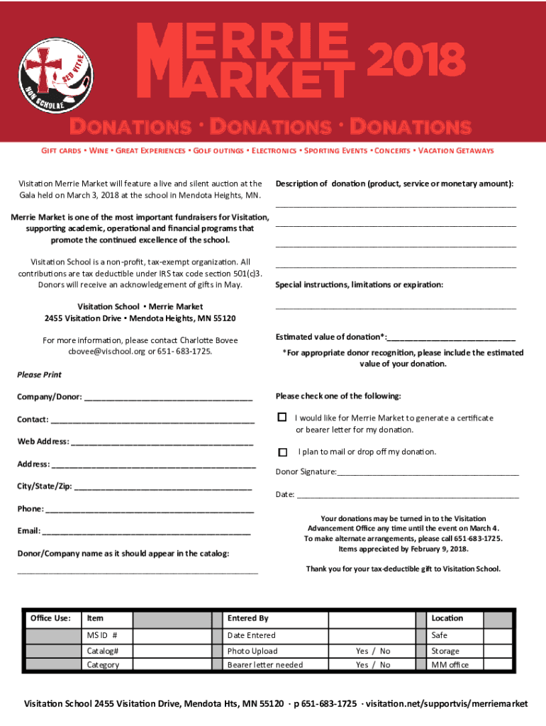To fill out Visitation Merrie Market Saint Paul forms, vendors need to provide their contact information, details about their products or services, and agree to the event rules and regulations.