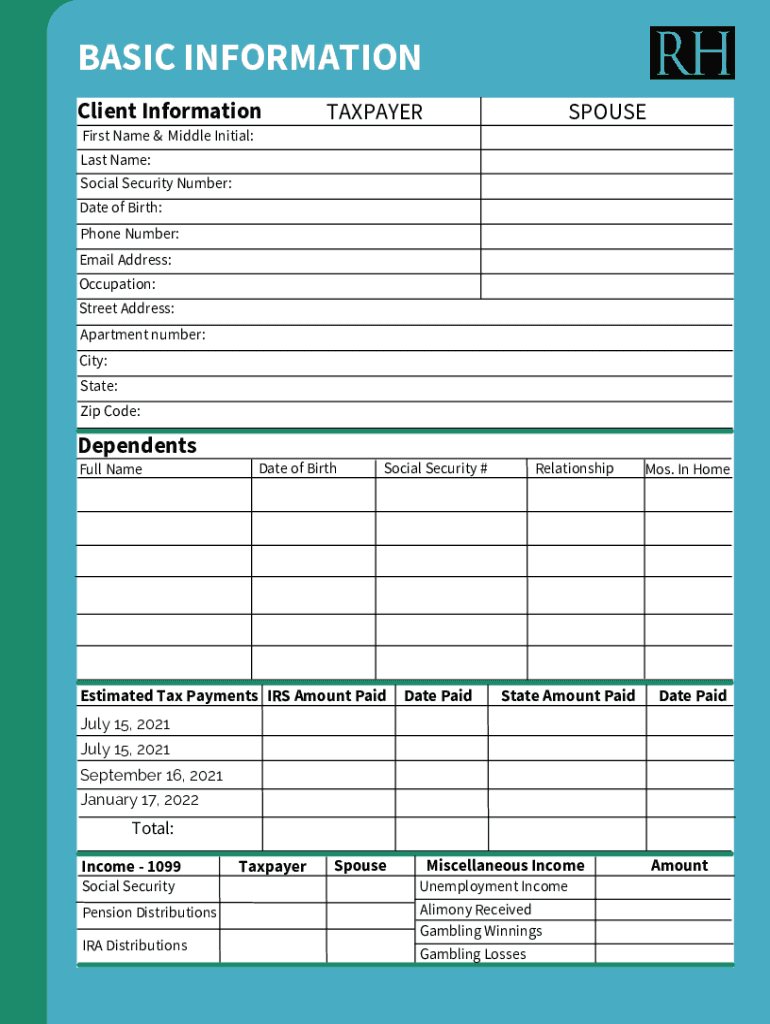 2021INDIVIDUAL QUESTIONNAIREREQUIRED Please complete and return or upload. INDIVIDUAL TAX QUESTIONNAIRE AT A MINIMUM WE ASK THAT YOU COMPLETE THIS BRIEF TAX QUESTIONNAIRE AND RETURN IT TO US NO LATER