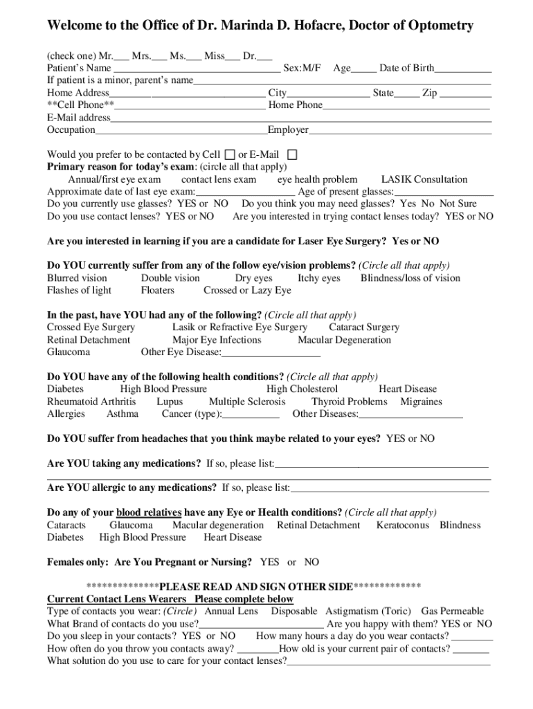 Patients Name ___ Sex’M/F Age___ Date of Birth___