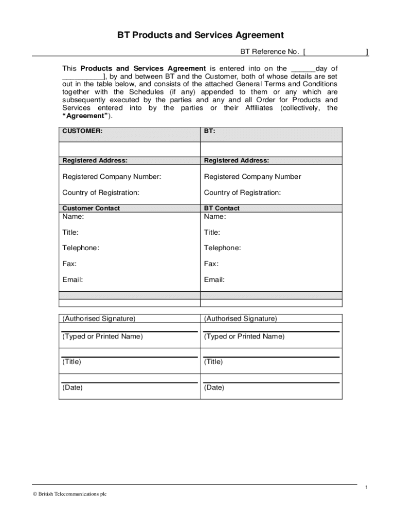 Get the free BT Products & Services Agreement