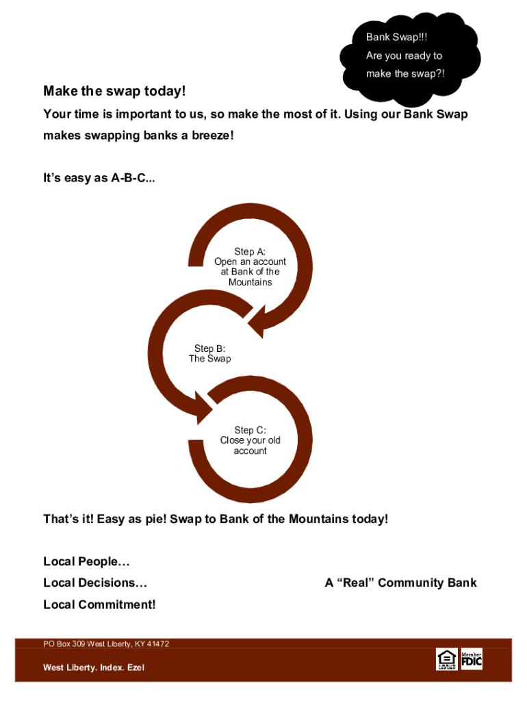 make the swap?! Make the swap today! Your time is important to us, so make the most of it. Using our Bank Swap