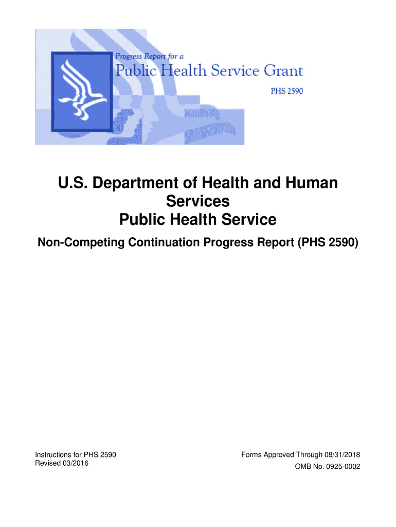 U.S. Department of Health and Human Services Public Health Service Noncompeting Continuation Progress Report (PHS 2590) Instructions for PHS 2590 Revised 03/2016 Forms Approved Through 08/31/2018