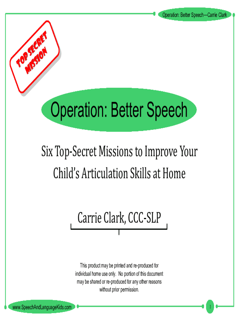 Operation: Better Speech Carrie Clarke rec n S p so o s T Operation: Better Speech Six Secret Missions to Improve Your Child's Articulation Skills at Home Carrie Clark, CCC SLP This product may be