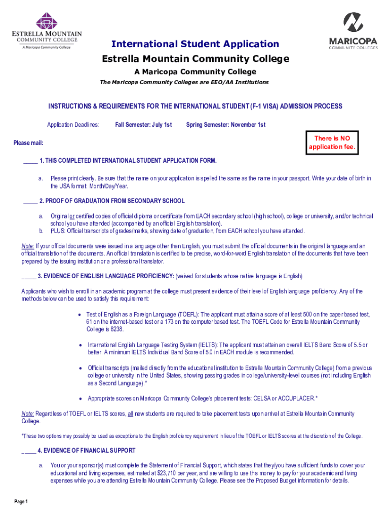 International Student Application Estrella Mountain Community College A Maricopa Community College The Maricopa Community Colleges are EEO/AA InstitutionsINSTRUCTIONS & REQUIREMENTS FOR THE INTERNATIONAL