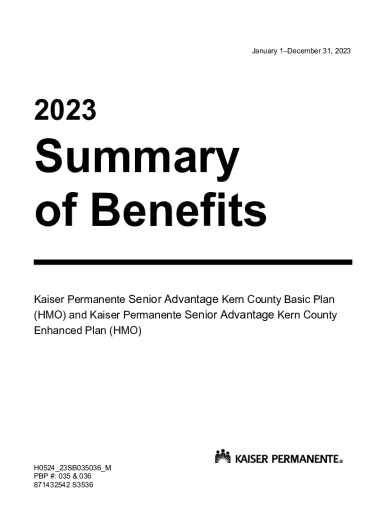 January 1December 31, 20232023Summary of Benefits Kaiser Permanent Senior Advantage Kern County Basic Plan (HMO) and Kaiser Permanent Senior Advantage Kern County Enhanced Plan (HMO)H0524_23SB035036_M