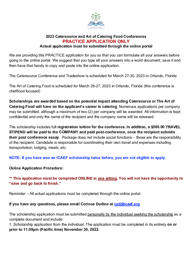 2023 Cater source and Art of Catering Food ConferencesPRACTICE APPLICATION ONLY