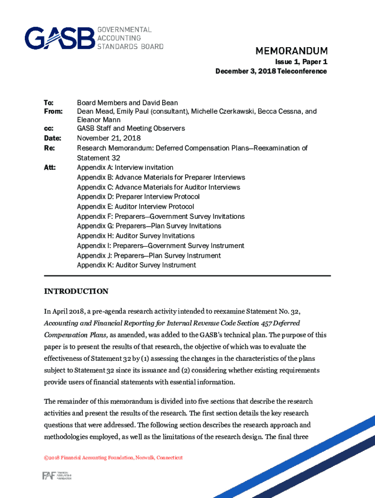 Issue 1, Paper 1 December 3, 2018, Teleconference: From: cc: Date: Re: ATT:Board Members and David Bean Dean Mead, Emily Paul (consultant), Michelle Czerkawski, Becca Cessna, and Eleanor Mann GAS