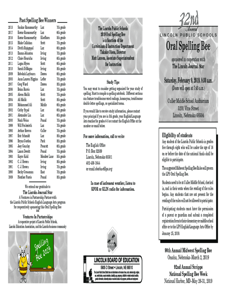 Get the free List of Scripps National Spelling Bee champions - home lps