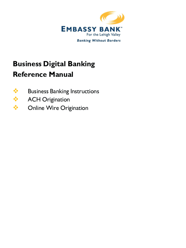 EMBASSYBANKFor the Leigh ValleyBanking Without BordersBusiness Digital Banking Reference Manual Business Banking Instructions ACH Origination Online Wire OriginationEMBASSYBANKFor TH., l.d.i, i;:h