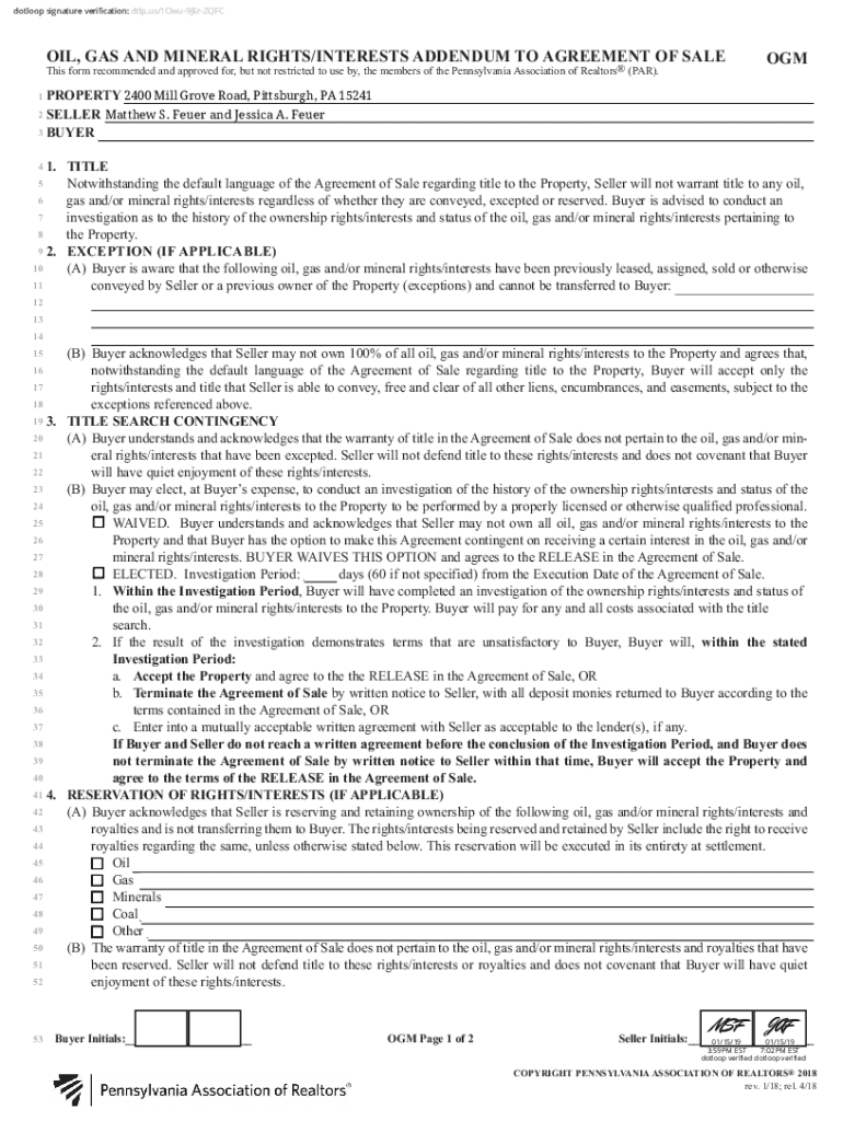 Dot loop signature verification: dtlp.us/1Owu9JErZQFCOIL, GAS AND MINERAL RIGHTS/INTERESTS ADDENDUM AGREEMENT FSALE