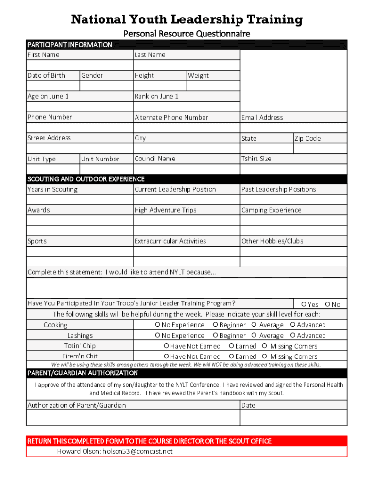The purpose of the nylt registration form is to gather information about participants and groups who wish to take part in the National Youth Leadership Training program.