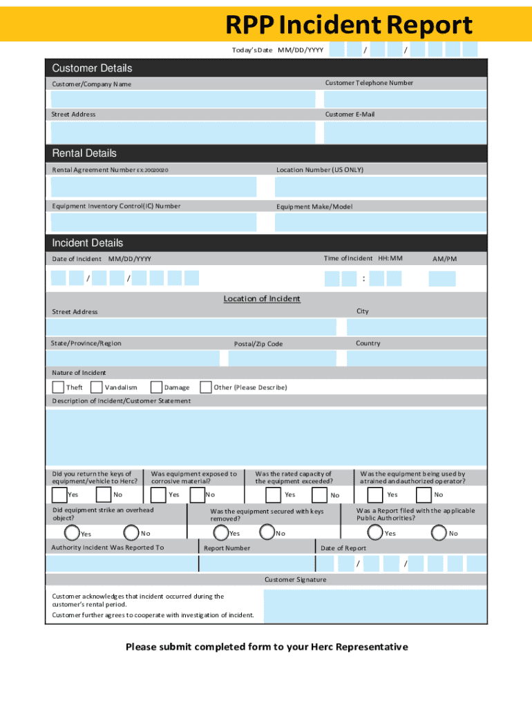 Incident Report Guidelines and Instructions When you purchase Rental Protection Plan (RPP), Her Rentals waives your responsibility for loss of or damage to the equipment/vehicle up to the full value