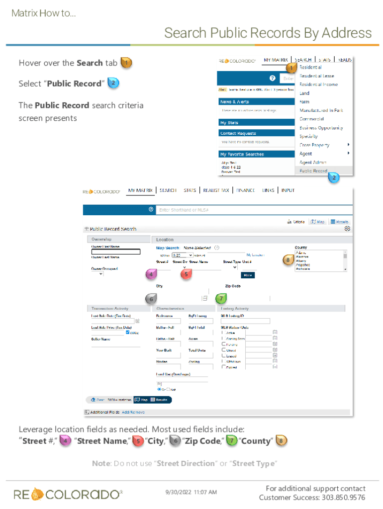 Matrix How research Public Records By Address Hover over the Search tab Select Public Record112The Public Record search criteria screen presents28 4576Leverage location fields as needed. Most used