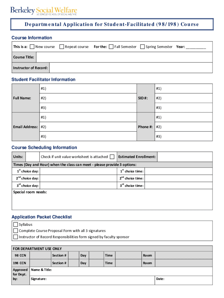 Departmental Application for StudentFacilitated (98/198) Course Information