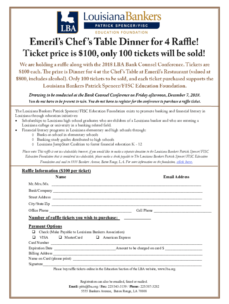 The Louisiana Bankers Patrick Spencer/DISC Education Foundation exists to promote banking and financial literacy in Louisiana through education initiatives: Scholarships to Louisiana high school graduates
