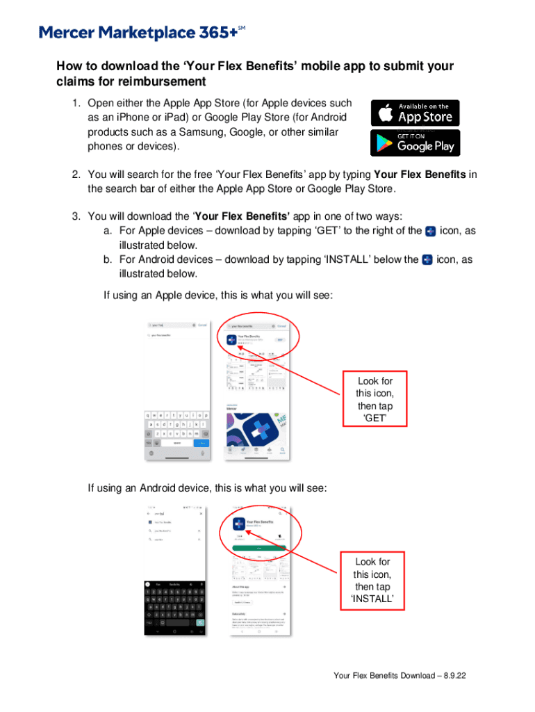 How to download the Flex Benefits mobile app to submit your claims for reimbursement 1. Open either the Apple App Store (for Apple devices such as an iPhone or iPad) or Google Play Store (for Android