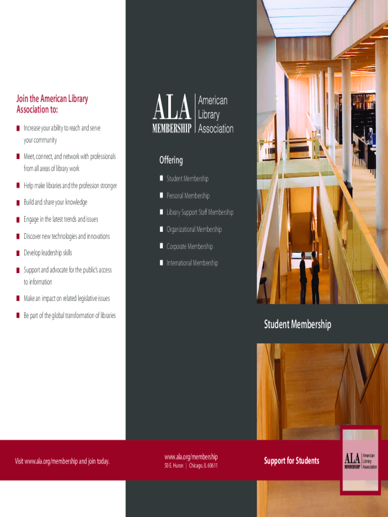 Association to:Increase your ability to reach and serve your communityMeet, connect, and network with professionals from all areas of library worked make libraries and the