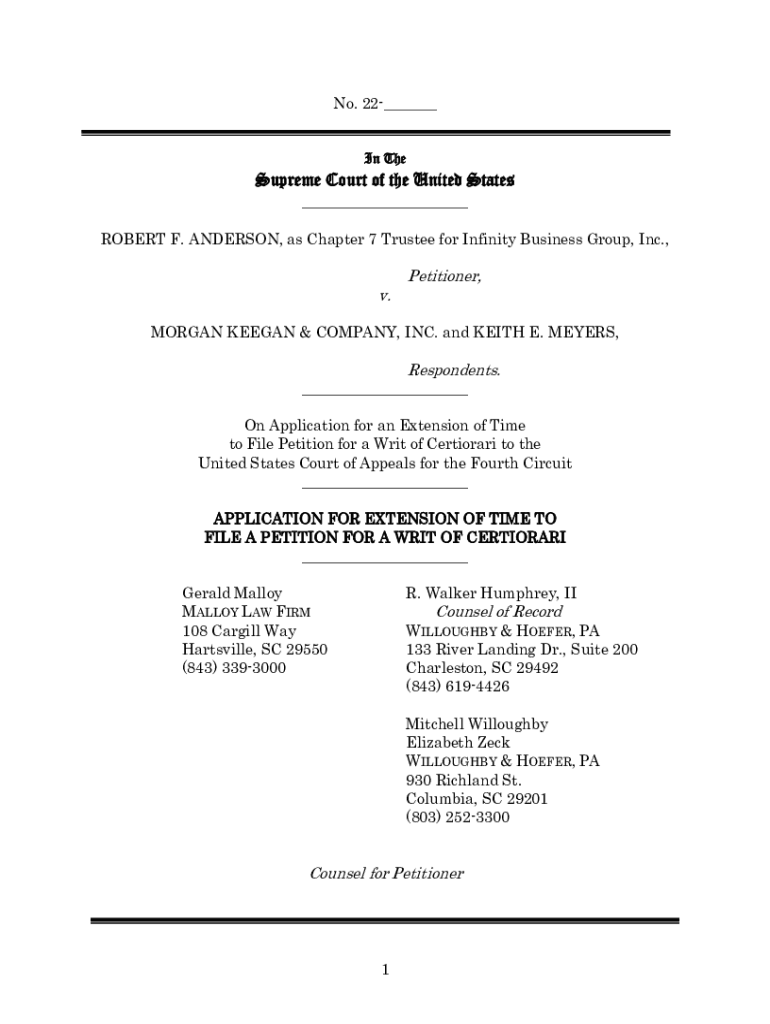 No. 22___ In Supreme Court of the United States ___ROBERT F. ANDERSON, as Chapter 7 Trustee for Infinity Business Group, Inc., v. Petitioner, MORGAN KEEGAN & COMPANY, INC. and KEITH E. MEYERS, Respondents.___On