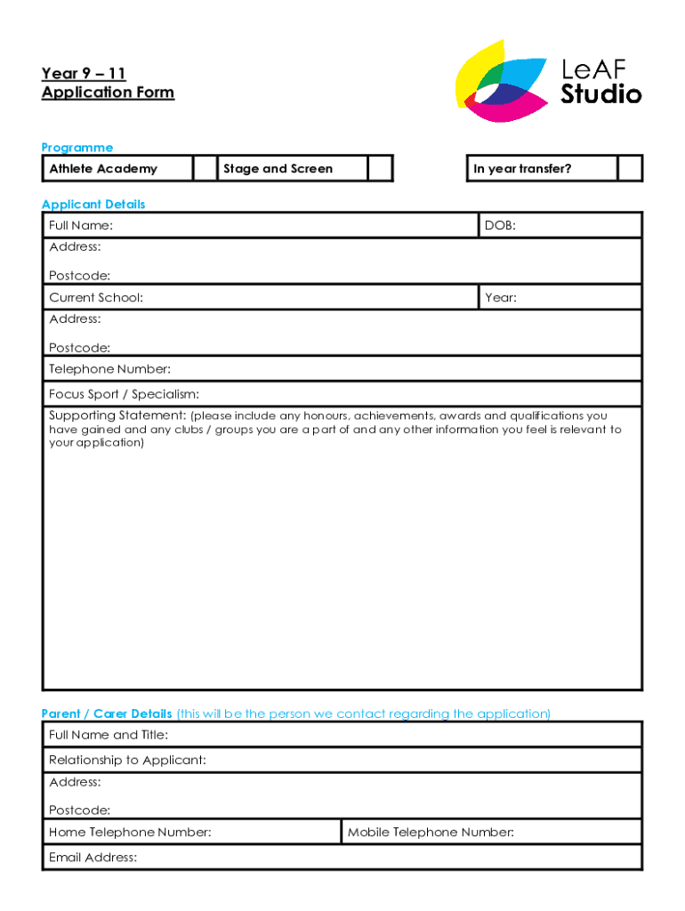 Get the free Year 911 Application Form - LeAF Studio