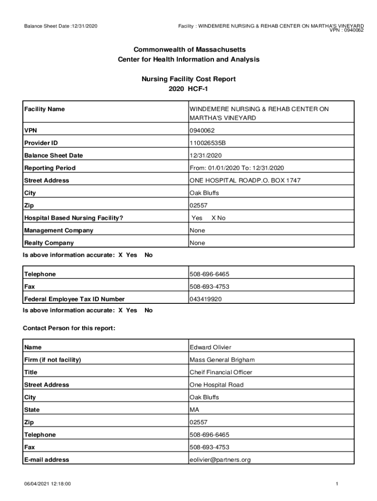 Balance Sheet Date :12/31/2020Facility : WANDERER NURSING & REHAB CENTER ON MARTHA\'S VINEYARD