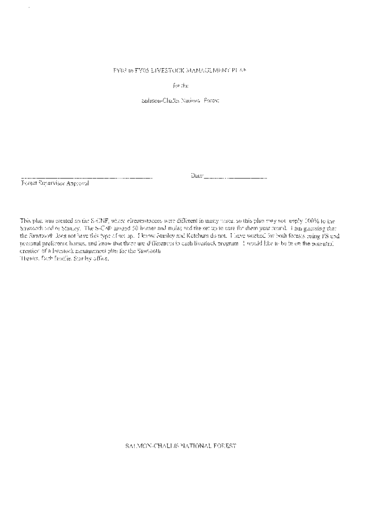 FY03 to FY05 LIVESTOCK MANAGEMENT PLAN for the SalmonChallis National Forestall:_ _ _ _ _ _ _ _ __ Forest Supervisor Approvals plan was created on the SNCF, where circumstances were different in many