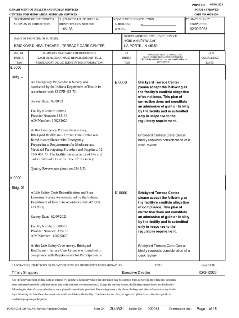 Get the free BRICKYARD HEALTHCARE - TERRACE CARE CENTER