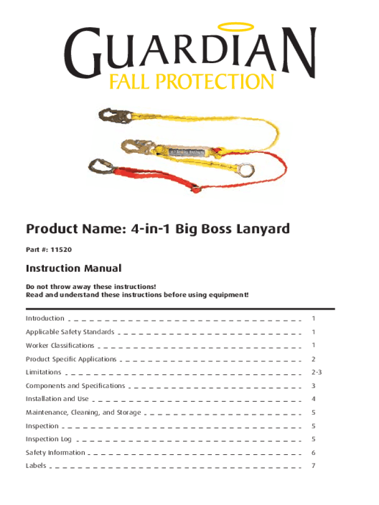 Product Name: 4in1 Big Boss Lanyard Part #: 11520Instruction Manual Do not throw away these instructions! Read and understand these instructions before using equipment! Introduction1Applicable Safety