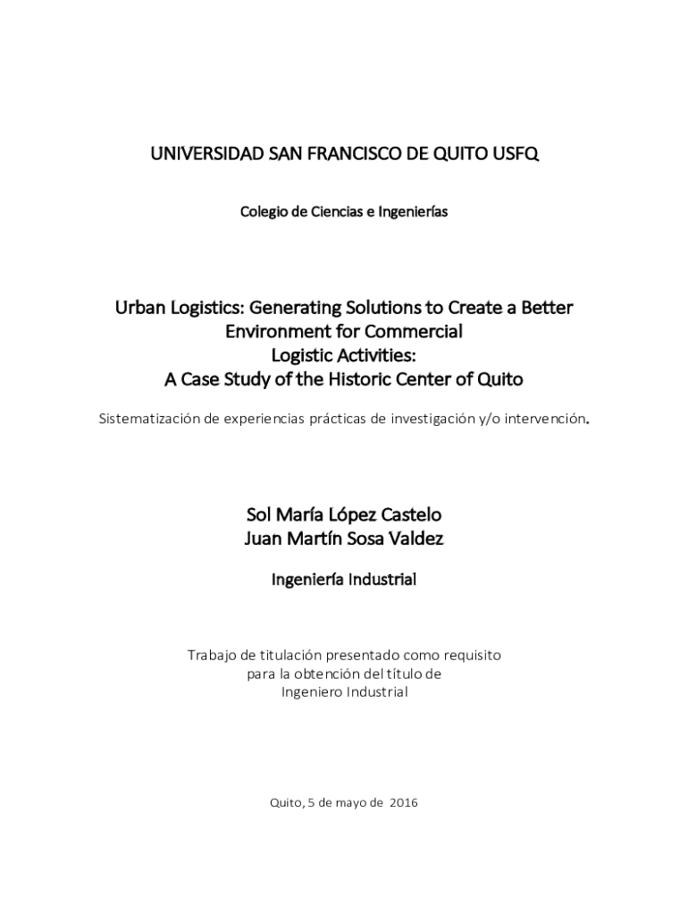 Colegio de Ciencias e IngenierasUrban Logistics: Generating Solutions to Create a Better