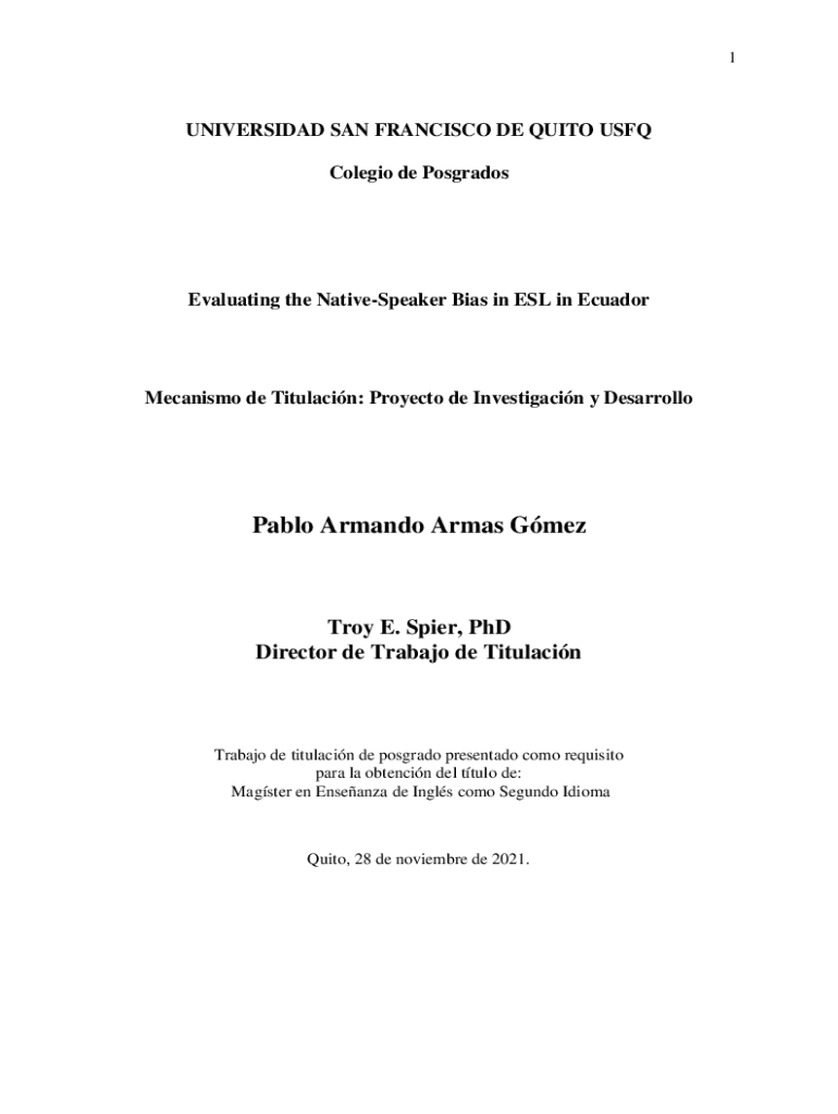 Colegio de PosgradosEvaluating the NativeSpeaker Bias in ESL in EcuadorMecanismo de Titulacin: Project de Investigacin y DesarrolloPablo Armando Areas Destroy