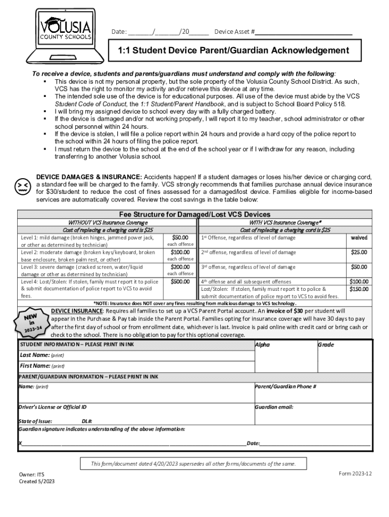Date: ___/___/20___ Device Asset #___1:1 Student Device Parent/Guardian Acknowledgement To receive a device, students and parents/guardians must understand and comply with the following: This device