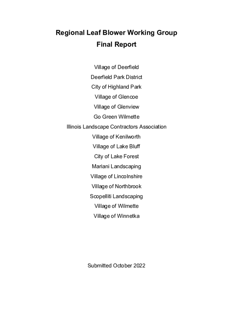 Regional Leaf Blower Working Group Final Report Village of Deerfield Park District City of Highland Park Village of Glencoe Village of Glenview Go Green Wilmette Illinois Landscape Contractors Association